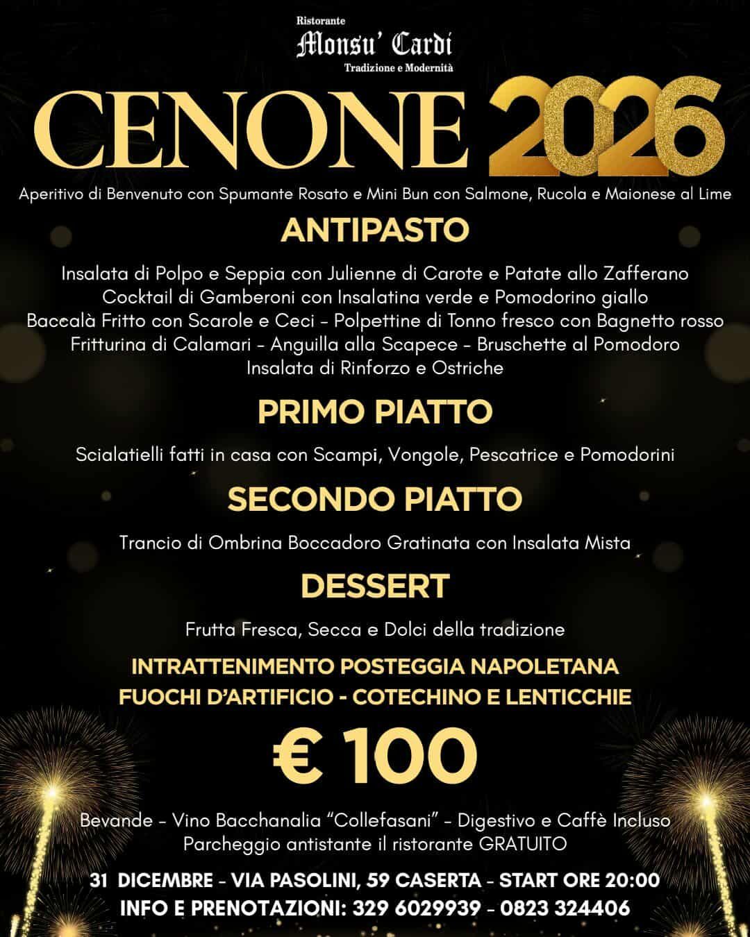 Presso il nostro Ristorante Monsú Cardí di Caserta vi offriamo l’opportunità di scegliere antipasti, primi, secondi, contorni e dolci attingendo dalle seguenti categorie di menu: